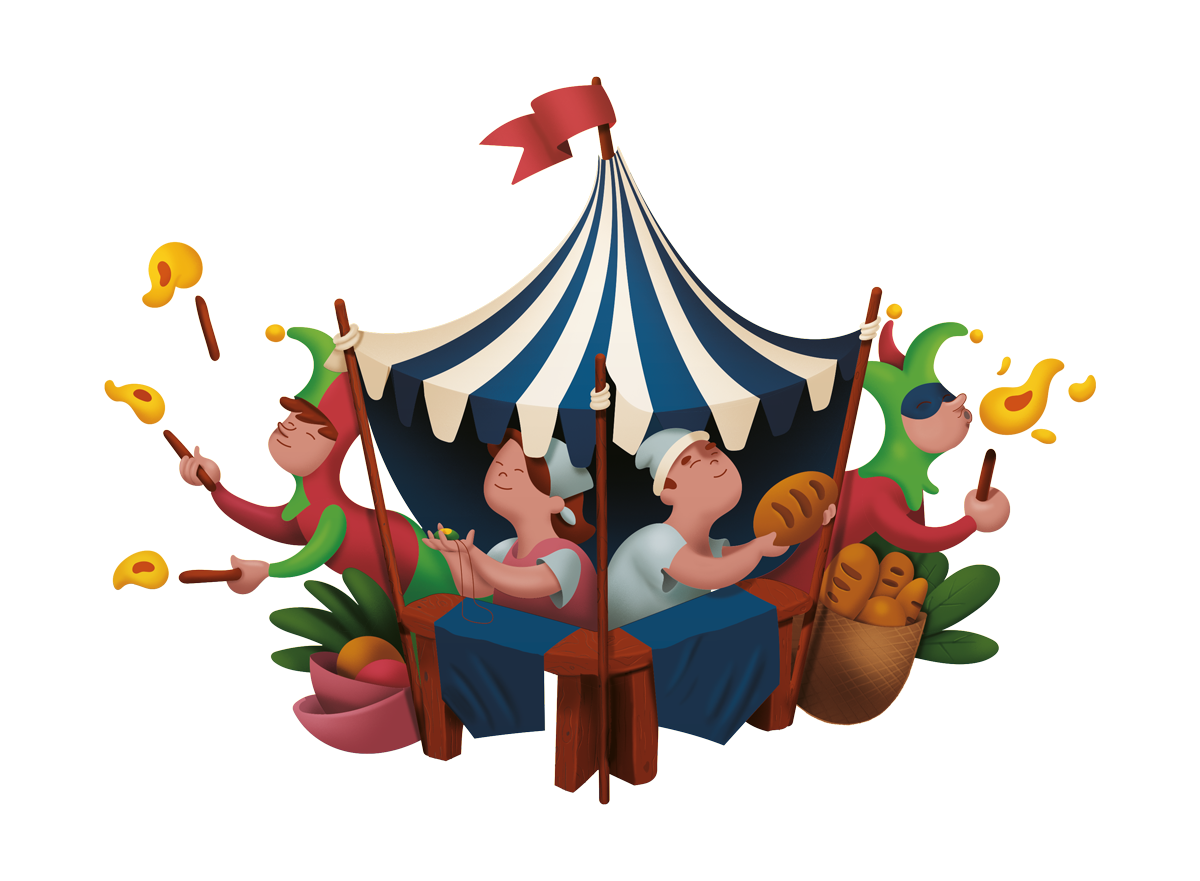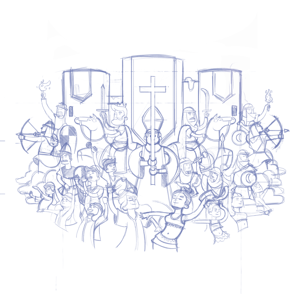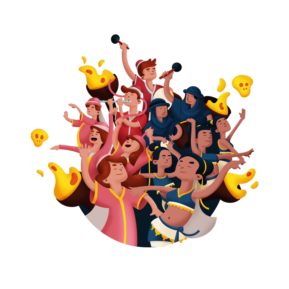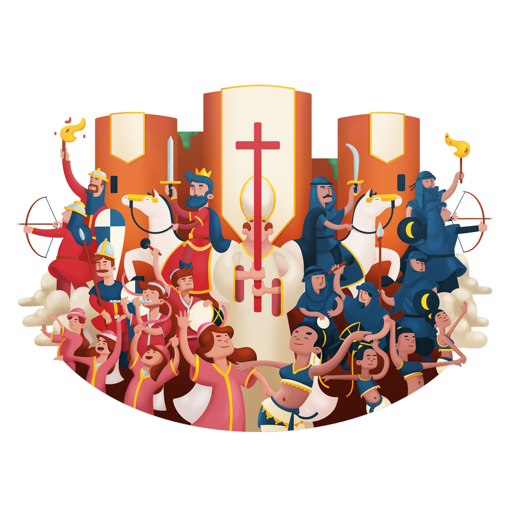 Diseño de cartel ilustrado acompañado de las distintas creatividades que compondrían los banners de cada uno de los eventos principales que componen dicha festividad como son el Fonsado, As-Satrany y Mercado Medieval.