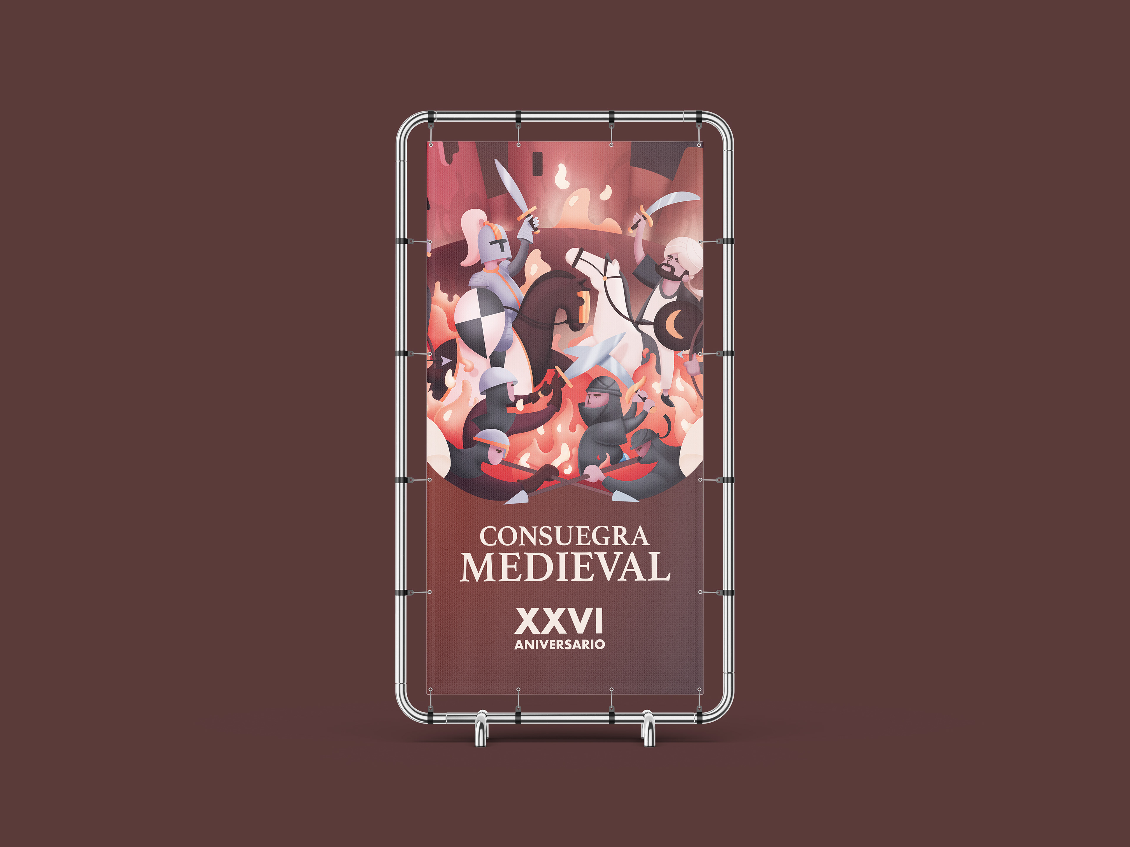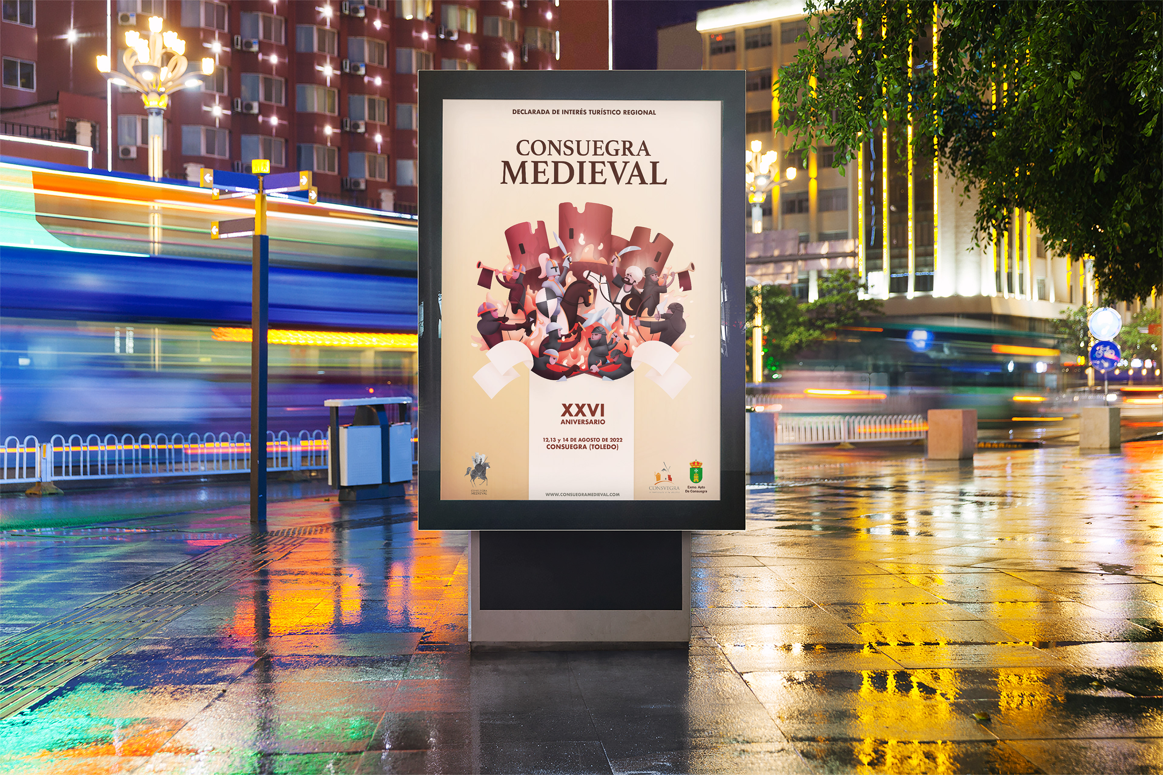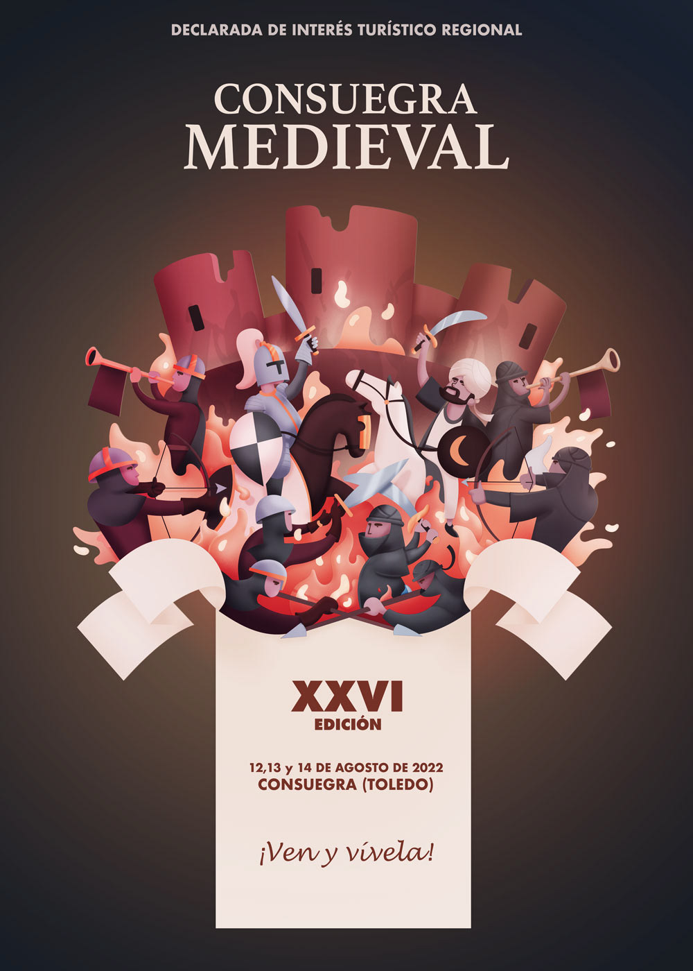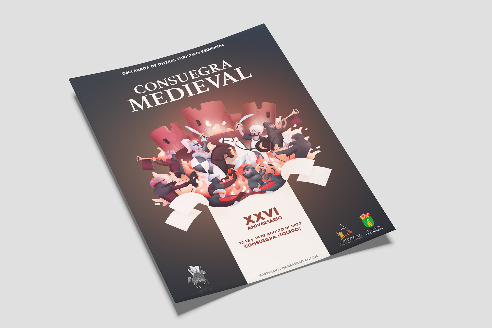 Diseño de gráfica publicitaria de las fiestas en relación a la Batalla Medieval de Consuegra, localidad de la provincia de Toledo. Fiestas que tuvieron lugar en Agosto de 2022.